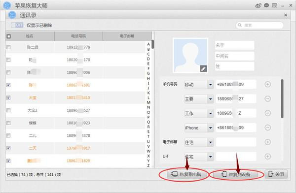 苹果恢复大师:iPhone手机通讯录联系人恢复方法详解: