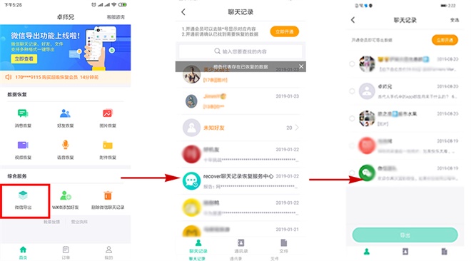 运行卓师兄,仔细阅读《用户隐私保护》后,点击首页的【好友恢复】进行微信好友恢复,根据提示进行操作,等待深度扫描完成后点击底部【通讯录】图标,即可查看被误删微信联系人列表;开通权限即可查看恢复回来的好友详细资料了,也可把微信好友的微信号等资料全部导出。