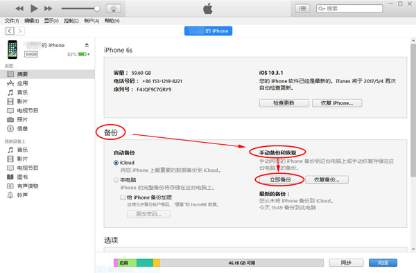 方法一:使用iTunes备份通讯录