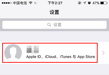第一步:我们从主界面点击【设置】进入设置界面,在屏幕最上方找到“Apple ID、iCloud、iTunes与App Store”这一栏,点击进入。