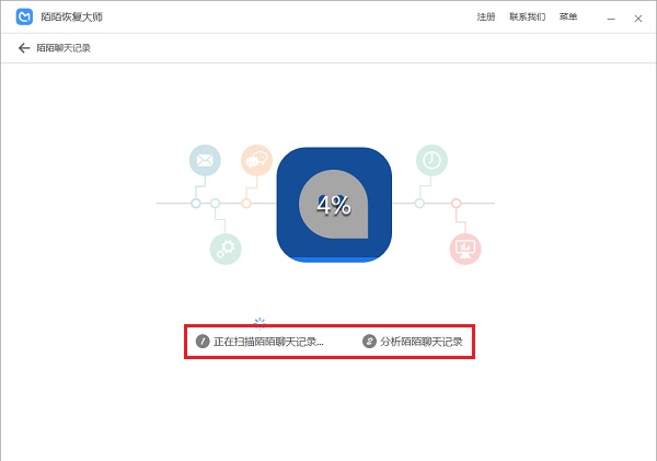 步骤三:来到数据项选择界面。点击图标【陌陌聊天记录】,进入扫描界面。
