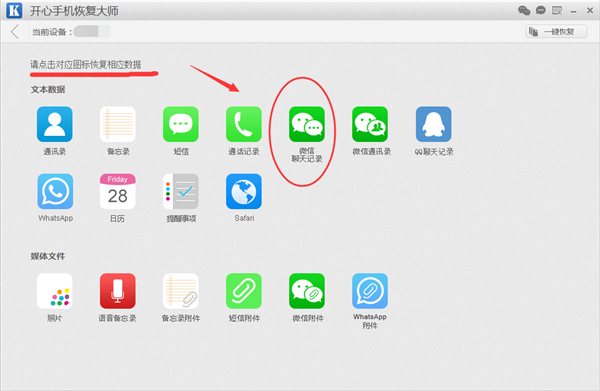 如今的年轻人都是低头族,大街上一观察大家都在玩微信,那么大家知道如何恢复微信删除的聊天记录吗?随着微信运用得越来越广泛,微信聊天记录也变得越来越重要了,一旦重要的微信聊天记录被删除了将是十分麻烦的,所以我们必须学会恢复微信删除的聊天记录,下面小编就教给大家一个恢复iPhone微信聊天记录的靠谱方法,就是借助开心手机恢复大师软件来恢复,下面我们一起来看一下具体的恢复方法吧。