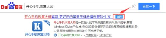 第一步:打开电脑访问开心手机恢复大师官网:http://www.kxbox.com/,或在百度搜索“开心手机恢复大师”后点击带有蓝色“官网”认证图标的链接,以确保下载到正版的软件。